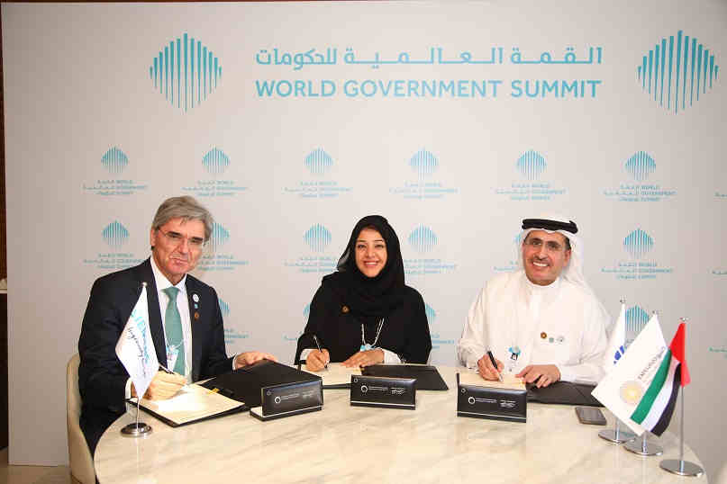 Dubaï, Émirats Arabes Unis, 13 février 2018-(AETOSWire): Au cours du 6ème Sommet Mondial du Gouvernement organisé à Dubaï, SE Reem Al Hashimy, Ministre d'État de la Coopération Internationale et Directrice Générale du Bureau d’Expo 2020 Dubaï, SE Saeed Mohammed Al Tayer, Directeur Général et PDG de L'Autorité de l'Electricité et de l'Eau de Dubaï (DEWA) et Joe Kaeser, PDG de Siemens, ont signé un protocole d’entente visant à lancer un projet pilote pour la première installation d’électrolyse d’hydrogène à énergie solaire de la région, dans les installations d'essai extérieures du Parc Solaire de Mohammed Bin Rashid Al Maktoum.