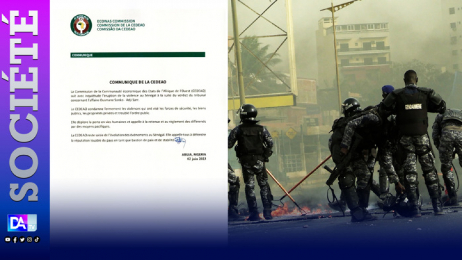 La commission de la communauté économique des Etats de l'Afrique de l'Ouest (CEDEAO) dans un communiqué, qui dit suivre avec inquiétude l'éruption de la violence au Sénégal à la suite du verdict du tribunal concernant l'affaire Ousmane Sonko - Adji Sarr, condamne fermement les violences qui ont visé les forces de sécurité, les biens publics, les propriétés privées et troublé l'ordre public.