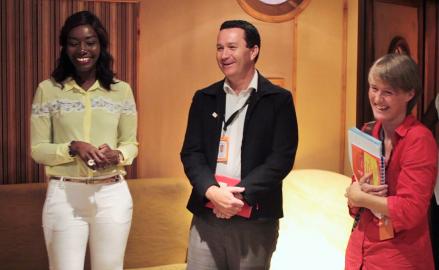 Coumba GAWLO, la Diva à la voix d'or, continue d'intéresser vivement les organismes humanitaires, grâce à ses actions diverses. Elle a eu l'immense plaisir de recevoir Monsieur Andrew CATFORD, Directeur National de WORLD VISION SENEGAL, et sa délégation. Ils sont allés visiter les locaux du groupe GO MEDIA, et bien sûr ceux de la radio FEM.fm 87.9. Ceci en prélude à de futures actions conjointes.