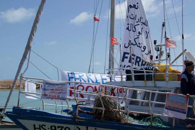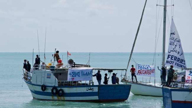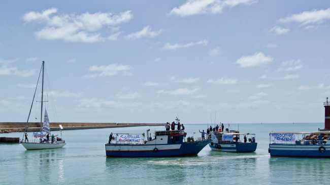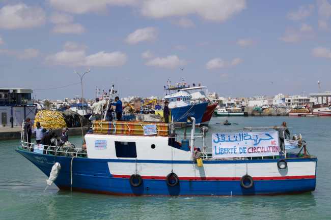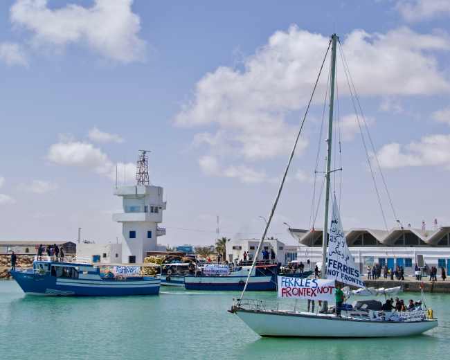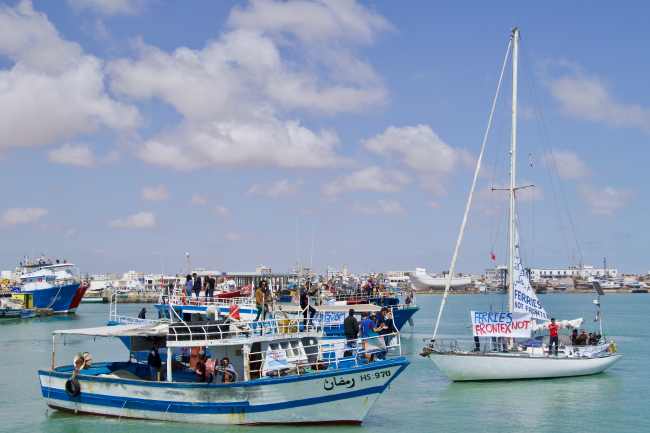 Le 9 Avril dernier à Zarzis, Tunisie, 100 personnes ont manifesté contre la continuation des morts en mer causés par la politique migratoire meurtrière de l’Union Européenne et la criminalisation des opérations de sauvetage en mer Méditerranée. Pécheurs, défenseurs des droits de l’homme et membres de la société civile ont encerclé le port de Zarzis à l’aide de 5 bateaux pour exprimer leur colère et affirmer la dignité de toutes et tous.